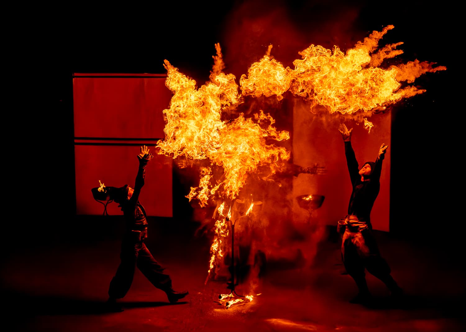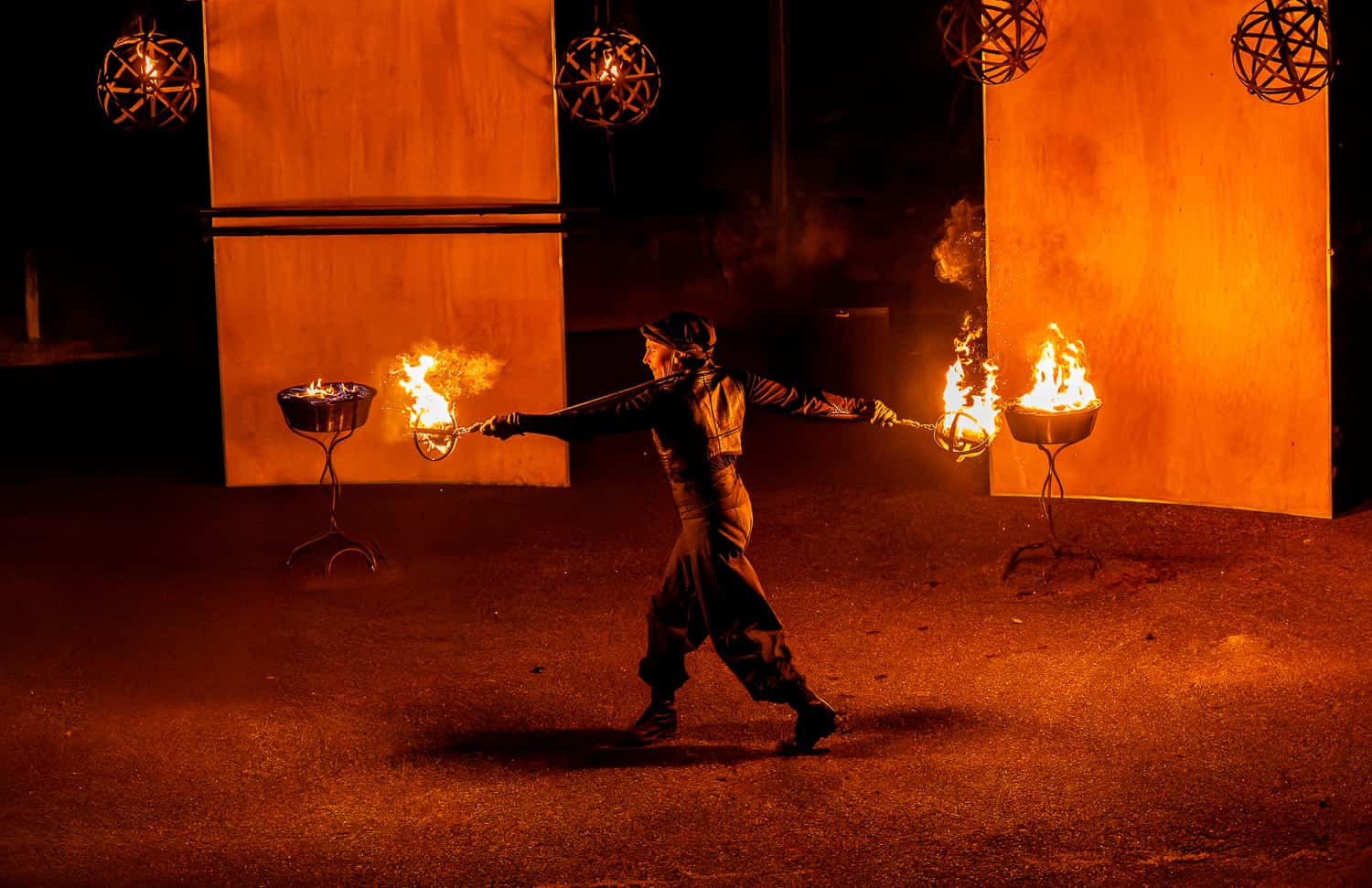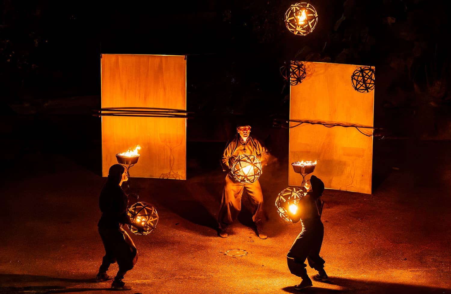 « Les Pyromages » est la plus récente création de la compagnie Acroballes. Quatuor associant trois performers de feu et un musicien live, ce spectacle,  riche en effets pyroscéniques originaux, vous entraine dans notre univers de transe enflammée. La musique électronique et les percussions, jouées « live » contribue à l’atmosphère magique et poétique de cette performance. Accessible à tous les publics, ce spectacle de feu s’adapte aussi bien aux festivals, événements culturels, fêtes de ville qu’aux animations familiales. Prêts pour une expérience unique ?