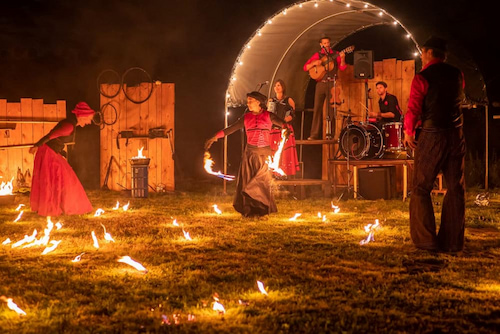 Nitrozika est la rencontre explosive entre 3 musiciens et 3 manipulateurs de feu. Un spectacle 100% énergie et bonne humeur avec des influences musicales récoltées tout au long du Danube. Adressé au plus large public (de 0,5 à 99,5 ans), ce spectacle de feu peut se jouer en fixe ou déambulatoire (parcours et durée à définir). Il est parfaitement adapté aux festivals, événements culturels, fêtes de ville ainsi qu’aux animations familiales.
