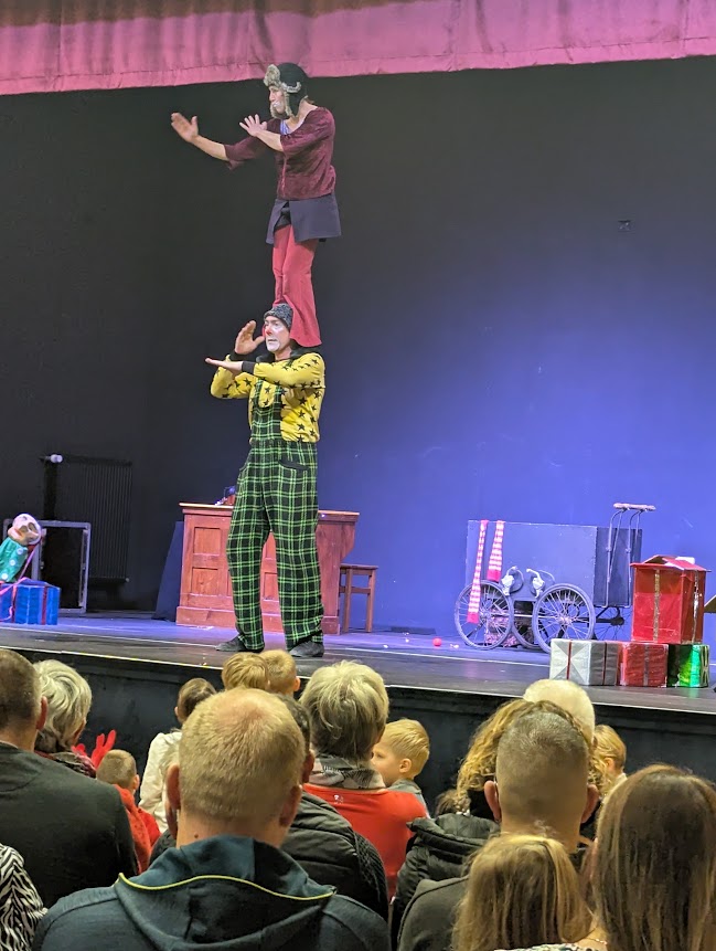 « Sur la Piste du Père Noël » est un spectacle de clown destiné à tous les publics. Il peut être joué dans les salles de spectacles, salles polyvalentes ou gymnases.